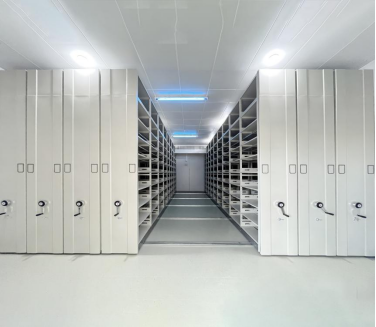 可移動(dòng)式存貯架,轉(zhuǎn)動(dòng)靈活、平穩(wěn)、搖力輕,可利用率高